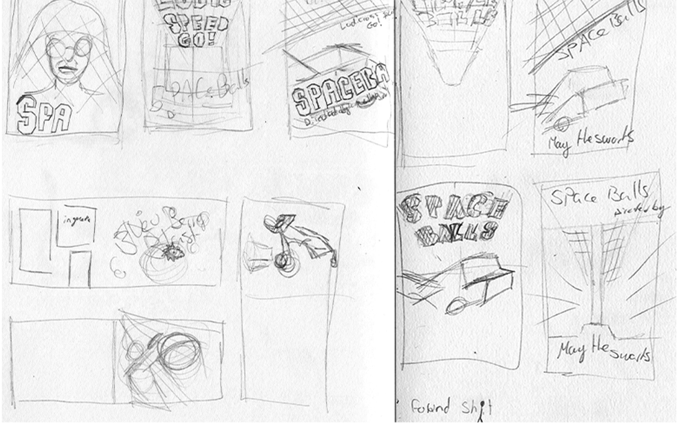 For one of my graphic design courses, I had to redesign a movie poster. Our teacher warned us against using a movie whose iconography is well known and utilised. This influenced my choice. I went with the 1987 spoof film Spaceballs. I knew I wanted to illustrate the iconic “they’ve gone plaid” scene. I did explore more options in my sketchbook but I knew the perspective was going to be amazing.
