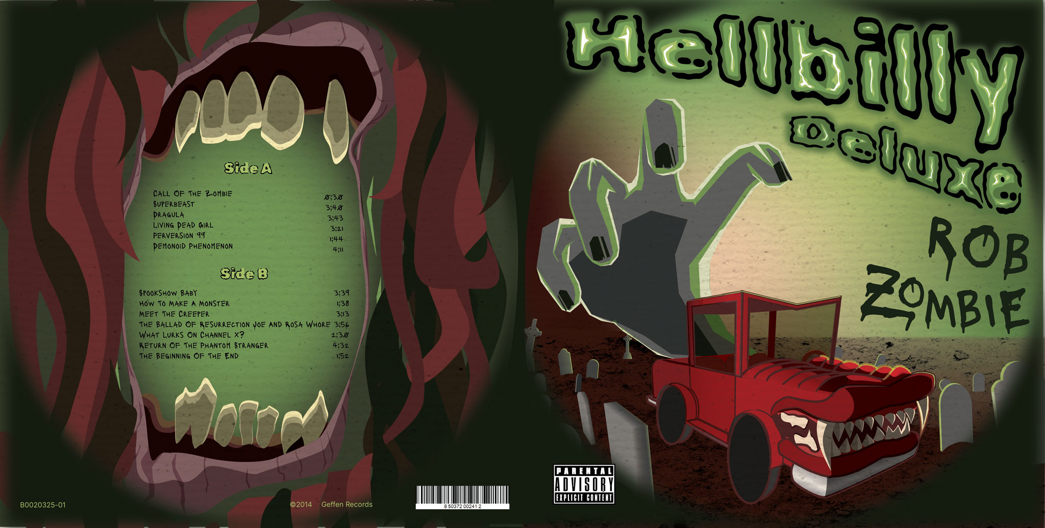 While studying graphic design at John Abbott College, I was tasked with redesigning a music album as a vinyl. I chose an artist I like and, since we started the project in October, one with an old B-horror-movie aesthetic: Rob Zombie. The entirety of this project was done in Illustrator, using only the pen tool with different layer blend modes. I’m especially happy with how the mouth on the back of the jacket turned out.